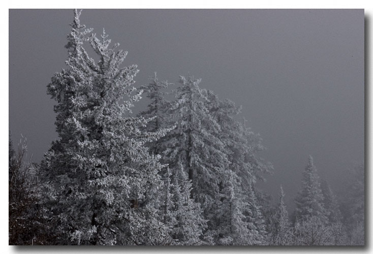 I thought about heading on up to the summit because I was sure that I would be able to have a fine time taking shots with the high contrast of the snow and hopefully, blue skies. About an hour after the first shot, you can see that the sky was starting to clear.
