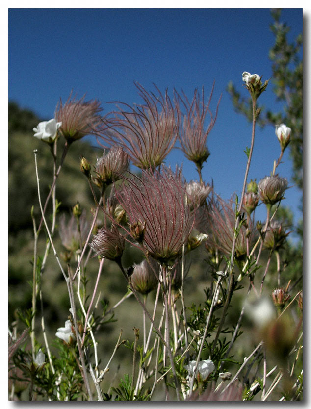 This plant is one of the many that grace the spring trails in the Sandias and is more commonly known as Apache plume. After the flowers blossom a fine light pink plume emerges from the plant.