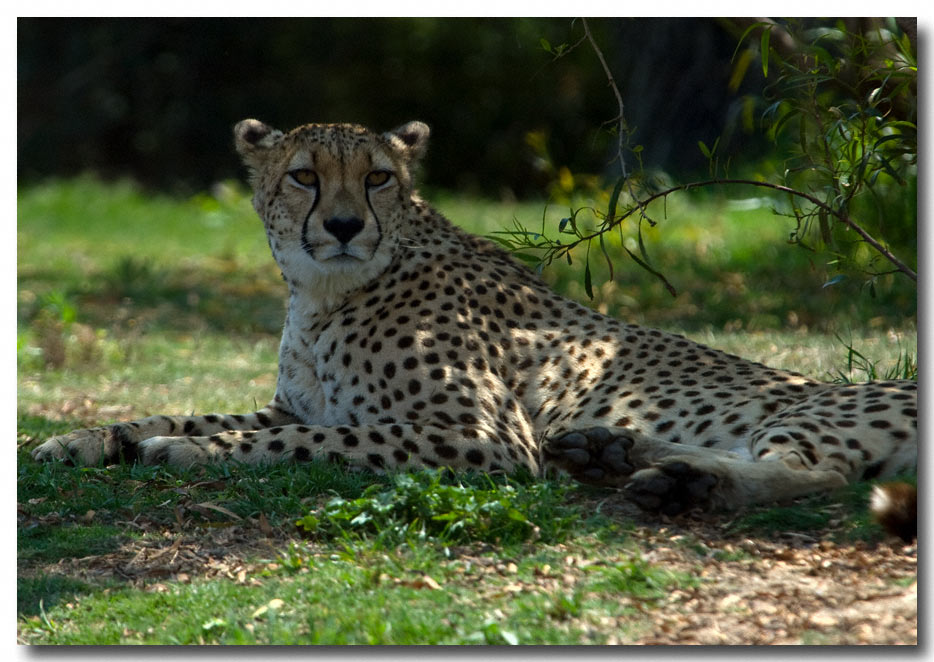 Just after the tram shot, the cheetahs were fed and I took this one after disembarking from the tram and walking over to the other side of the exhibit. Note how well this animal blends into the background.