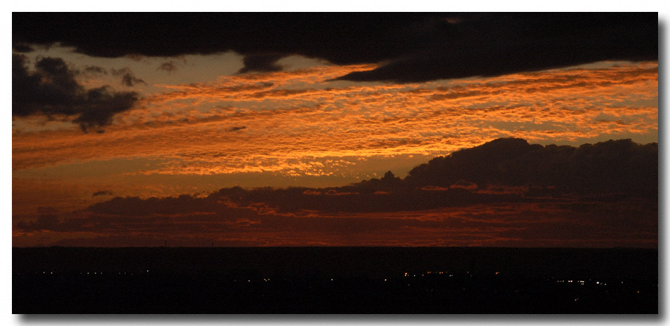 We had been chatting in the back yard and then did our usual move to the front balcony to watch the sun go down in the west. My in-laws were quite impressed with the view and the afterglow that silhouettes Mt. Taylor some 70 or so miles away.