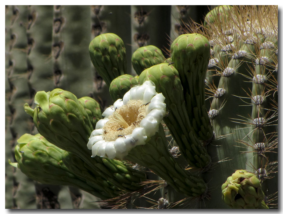 About the only way you can actually get eye level with a Saguaro cactus is to be hiking on a trail that climbs up the side of a hill and then you can shoot across to the top of the very tall cactus.