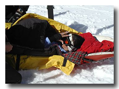 NO WAY AM I GOING DOWN ON ONE OF THOSE SKI PATROL THINGS!!