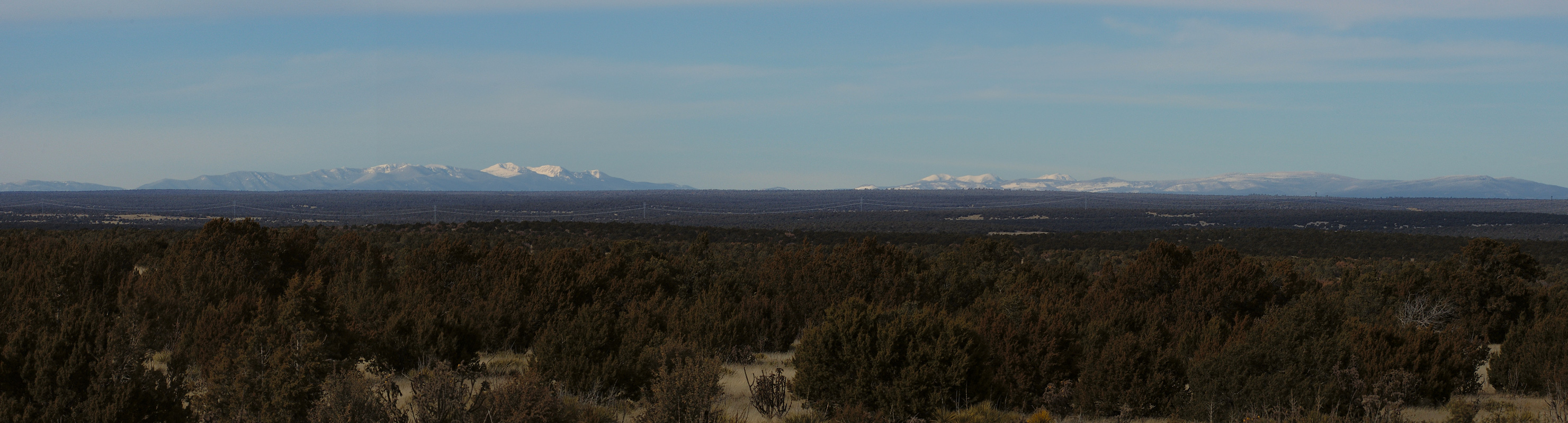 About 40 miles or so east of Albuquerque I pulled over and shot this panorama of the mountains that are just north of Santa Fe.