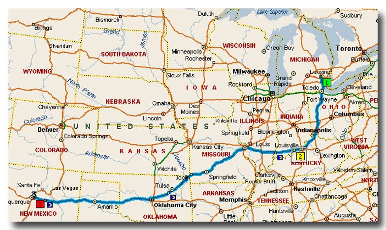 The only problem was, Mother Nature was just not in the mood to leave me with a nice high and dry road on my way. A major storm blew in with freezing rain pelting my exit route out of Michigan to the west. I went online and got radar images and thought about what the best route would be. My plan was to leave on Wed the 5th and get to Albuquerque by Friday the 7th and then fly home on the 9th. The way this ice looked however, I thought that I might have to lose an additional day.