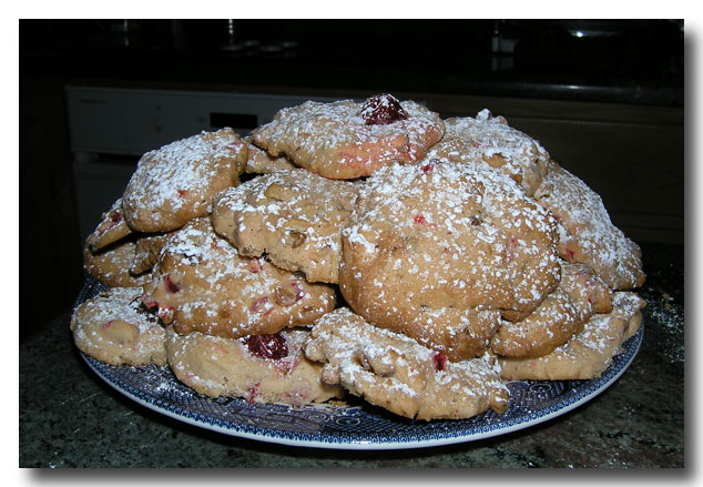 I realized that I messed up with the first batch, I forgot the cherry on top. However, the home vote was that although these were the best cookies ever tasted, the cherry on top should go.