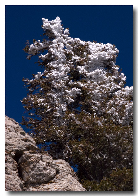 The only problem with getting the shots up there in the edge of the cliff is that the wind was howling and although I had on 4 layers of clothes, including a ski parka, hat and gloves, it was still cold. Even though I had on a ski hat, I covered it with the hood of my parka as I stood and waited for the right light to hit the tree I was trying to shoot.
