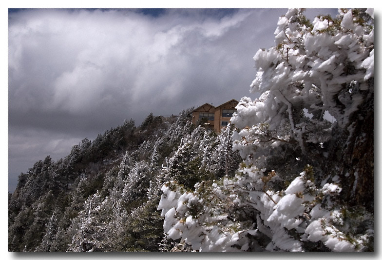 Just as I got to the parking lot, I noticed a break headed my way and I quickly set up my tripod to fire off the first round of shots. It is tough however, to get the right exposure in all of the contrast, especially when the light was changing so quickly. The clouds were racing across the mountain at about 30-40 miles per hour.