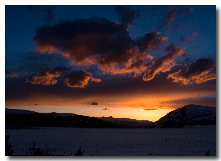 After soaking for an hour or a half, I continued north through Leadville just as the sun was about to set. As I drove out of town I was hoping that I could get to some high ground and hopefully get a great view when I came around a curve to this.