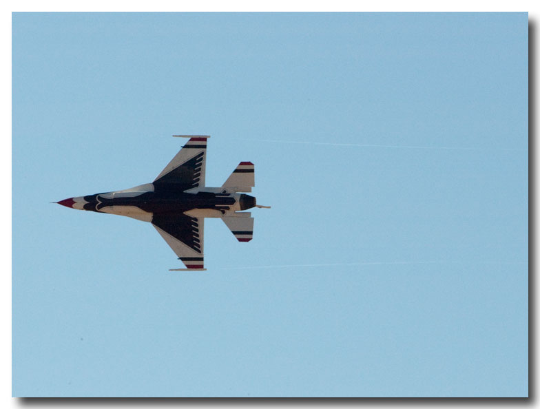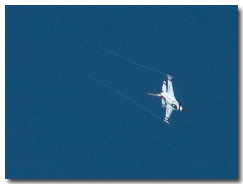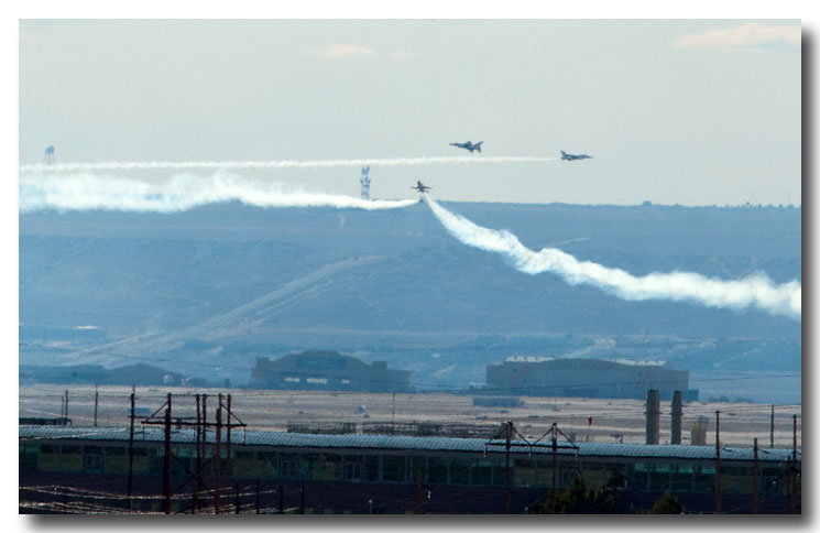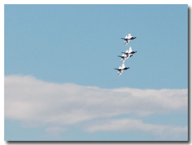 Although we didn't have front row seats for the fly-by's, we did have a unique perspective from our perch that overlooks the airport. Where we were standing was about 650 feet above the airport so some of the maneuvers were performed at our eye level - as seen through my long lens. We are also somewhere between three and four miles from the airport. (Nikon 70-200 vr with a 2x extender making it equivalent to a 600mm on a 35mm camera)