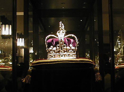 A moving sidewalk passes tourists by the Crown Jewels. Signs say NO PHOTOGRAPHY and this image is a testament to the power of a good digital camera, without using a flash.