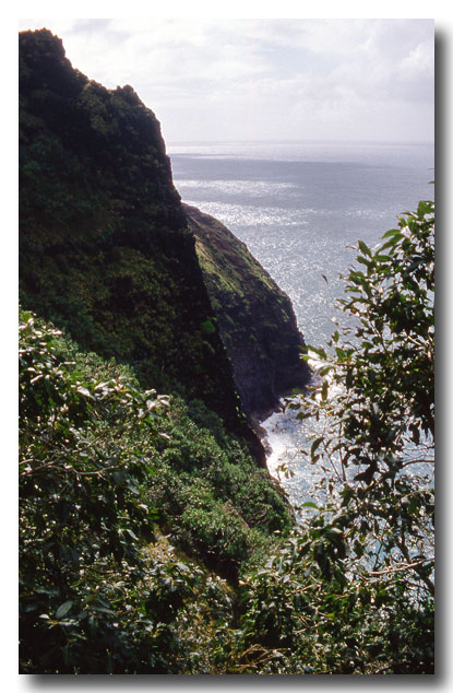 Hiking the Napali coast trail. Many places the trail diverts inland for a ways because of the steep cliffs.