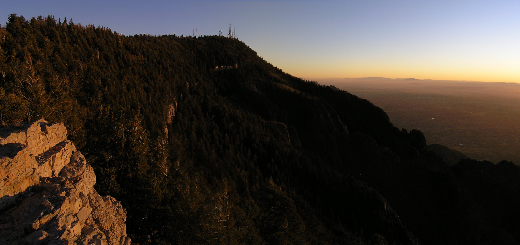 View south to the towers from the edge of the sandias where the Survey Trail meets the Crest Trail.