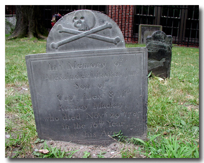 In Memory of Alexander MacKay Jun Son of Capt Alexr & Mrs Ruthey Mackay Who died Nov 29th 1787 in the 16th year of his Age