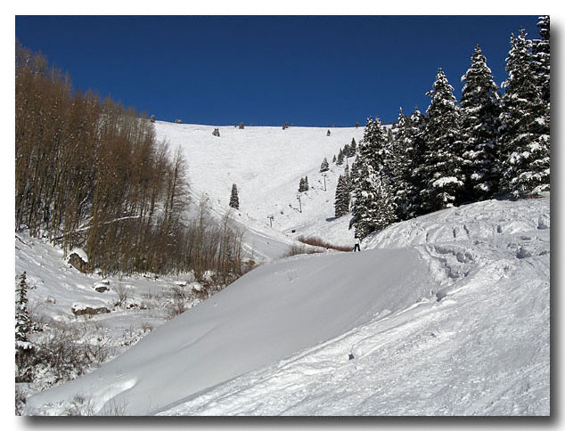 Looking uphill from the Catwalk, Sunup bowl, Vail