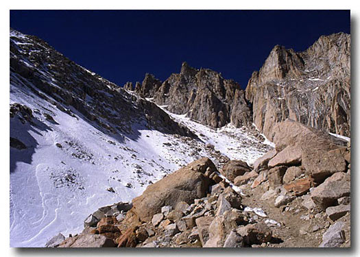 Mt. Whitney California - High trail above 12,000 feet on the way to the saddle. Scan from a slide